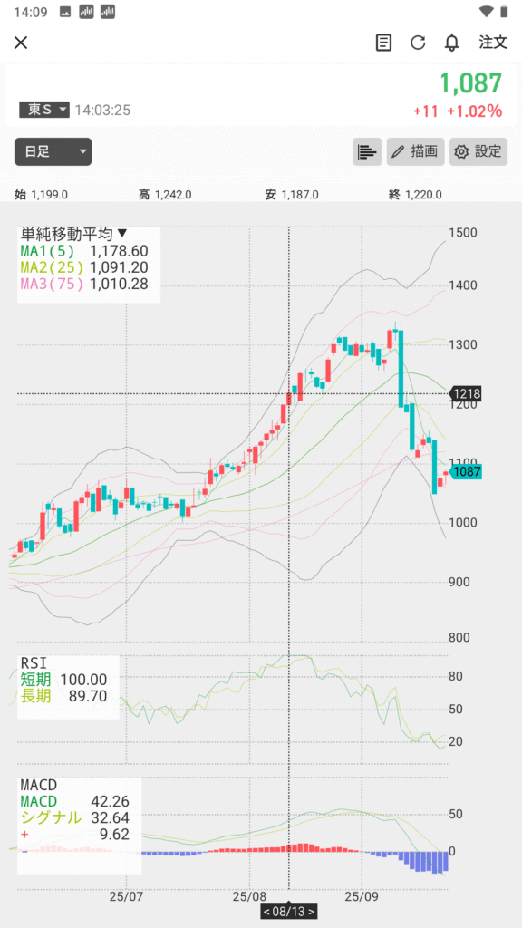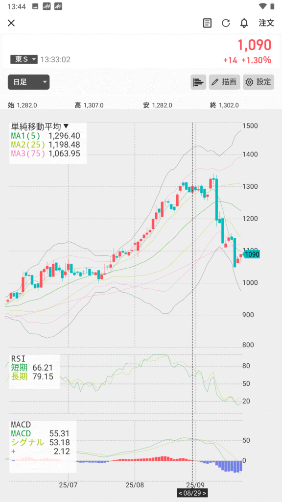 「買ったのに株価が動かない=失敗」と考えるのは早計です。投資においては、すぐに結果が出るよりも、成長や値動きが育つ時間を見守ること が重要になります。特に短期的なノイズに振り回されず、テクニカルの指標を見ながら冷静に保有を続けることが、『堅実スイング投資』の基本姿勢です。